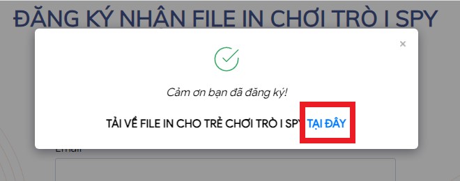 Ngay sau khi bạn điền form, thông báo đăng ký thành công xuất hiện, bạn nhấn vào Tại đây để tải tài liệu về thiết bị. Chúc các con sẽ sử dụng bộ tài liệu này một cách hiệu quả!