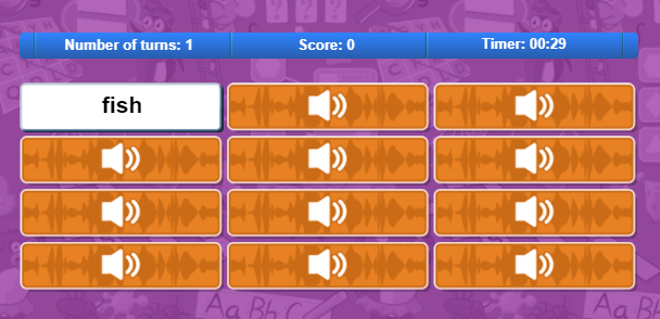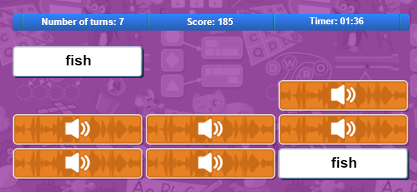 Trò chơi ghép cặp này giúp bé đồng thời học cách phát âm từ và ghi nhớ mặt chữ. Không những thế, bé còn phải nhanh tay nhanh mắt để nhớ vị trí từ. Nếu có một nhóm trẻ cùng học thì trò chơi từ vựng này sẽ trở thành một cuộc thi đua thú vị nhờ chức năng tính giờ. Nếu không, bản thân bé cũng có thể tự đo sự tiến bộ về thời gian của mình