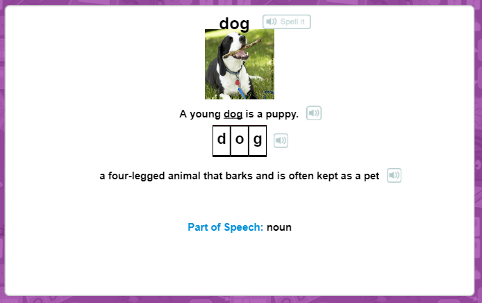 - Bấm vào biểu tượng loa để nghe hệ thống đọc từ và định nghĩa từ.
