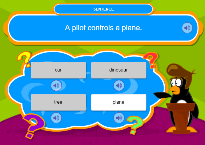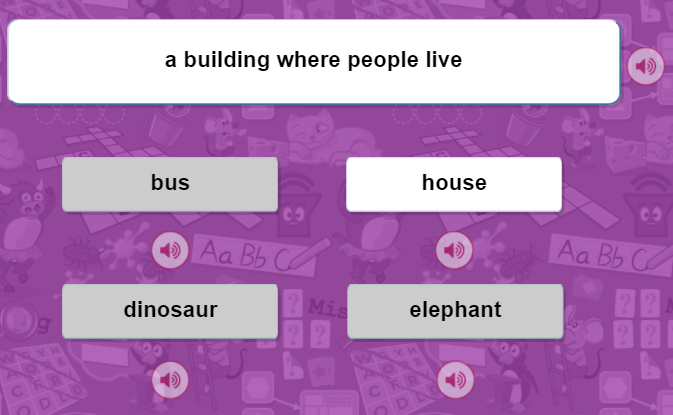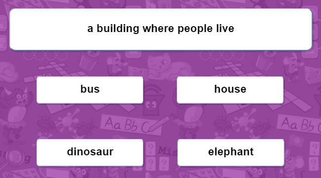 Trò chơi này tập trung kiểm tra khả năng nhận biết, ghi nhớ từ mới thông qua định nghĩa của từ. Khi chơi xong, cha mẹ có thể đố bé 1 từ có trong game và hỏi bé về nghĩa của từ. Bé sẽ trả lời bằng các định nghĩa phù hợp mà mình vừa chọn.