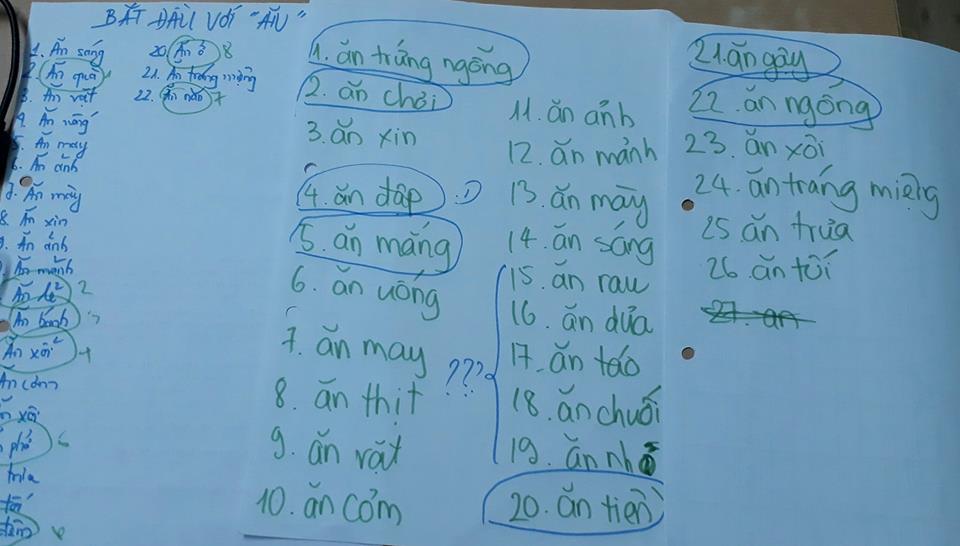 Từ lớp 2, với môn tiếng Việt các con sẽ gặp rất nhiều bài yêu cầu viết ra các từ băt đầu bằng tiếng này, tiếng kia. Hãy thử học mẹ con chị Hồ Điệp bằng cách thi xem ai tạo ra được dãy từ dài hơn, cùng bắt đầu từ một tiếng nào đó. VD: