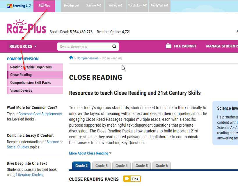 Với tiếng Anh, khi mua licence sử dụng Raz-Plus, phụ huynh được cấp cả tài khoản teacher để khai thác rất nhiều học liệu về Close Reading mà các chuyên gia ngôn ngữ của Learning A-Z đã thiết kế bài bản. Đi kèm từng văn bản có sẵn các hướng dẫn và câu hỏi cho học sinh luyện kĩ năng Close Reading với văn bản này.