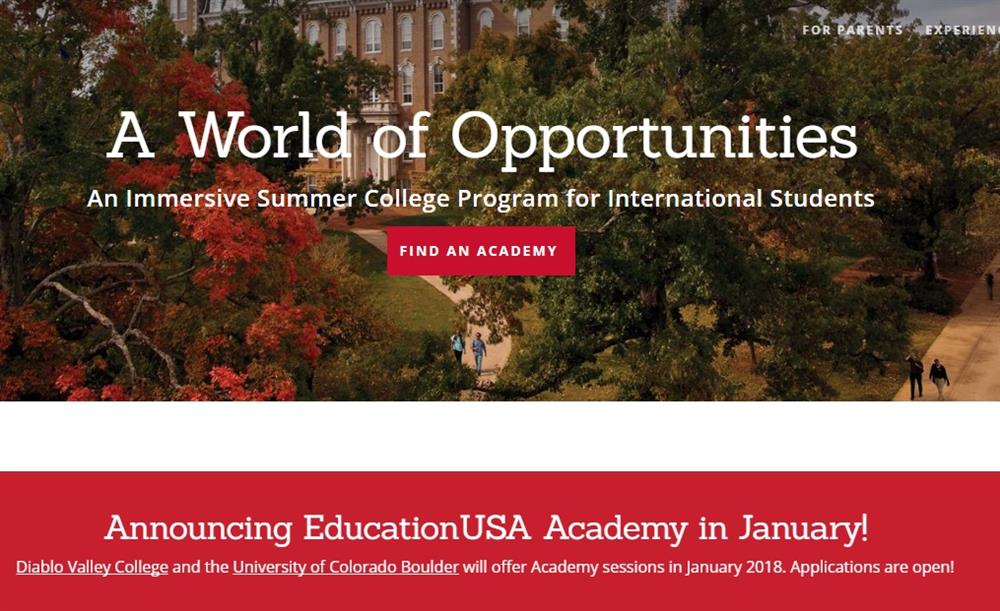 Thông tin về các chương trình học hè tự túc trên trang chủ Education USA.
