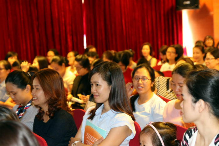 Hội trường hội thảo Giúp con giỏi đọc 200 ghế kín chỗ ngồi, với không khí luôn tập trung, hào hứng.