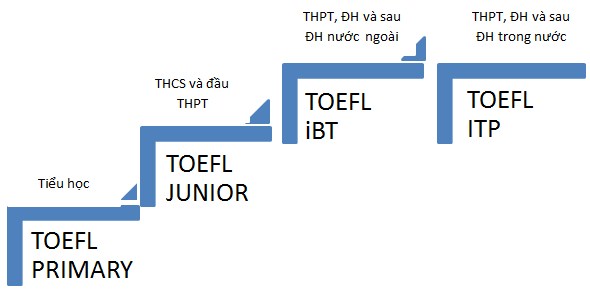TOEFL Primary mang tính kế thừa và nằm trong hệ thống “Gia đình TOEFL” gồm TOEFL Primary (dành cho học sinh tiểu học), TOEFL Junior (dành cho học sinh phổ thông), TOEFL iBT (dành cho học sinh THPT có định hướng du học), TOEFL ITP (dành cho học sinh THPT để xét tốt nghiệp Tú tài hoặc cử nhân chuyển tiếp.học cao học trong nước) …