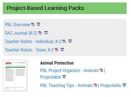 PBL bao gồm các tài liệu hướng dẫn giúp thúc đẩy và gợi mở tư duy phản biện, tính sáng tạo, đổi mới và cả kỹ năng tương tác, giao tiếp của các thành viên trong nhóm (project). Mỗi PBL sẽ đưa ra một tình huống (scenario) bao gồm vấn đề cần giải quyết và driving question giúp định hướng trẻ trong việc xác định mục tiêu và phương pháp nghiên cứu. Trẻ sẽ cần phải tìm được giải pháp cho vấn đề đặt ra, cùng nhau phát triển project và trình bà trước lớp. Trong quá trình thực hiện project, trẻ sẽ được trải nghiệm nhiều vai trò khác nhau như một nhà nghiên cứu, kỹ sư, một nghệ sĩ, một công dân có trách nhiệm...