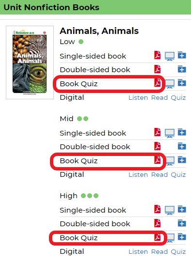 Các bài đọc trong Science A-Z được chia thành nhiều cấp độ khác nhau dựa trên các yếu tố: