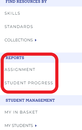 Bấm chọn biểu tượng 3 dấu gạch ngang, sau đó chọn Reports. Có 2 loại báo cáo về các bài học được giao và về tiến bộ của học sinh.