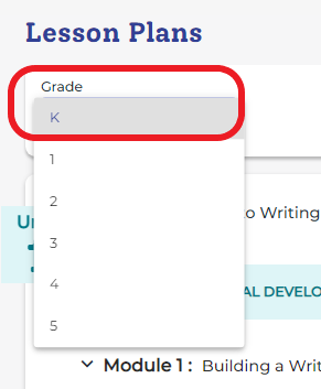 - Chọn khối lớp tương ứng với trẻ. Ví dụ, Grade K.