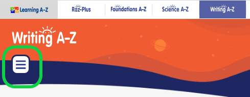 Bấm vào biểu tượng 3 đường kẻ ngang ở góc trên bên trái màn hình trang chủ Writing A-Z.