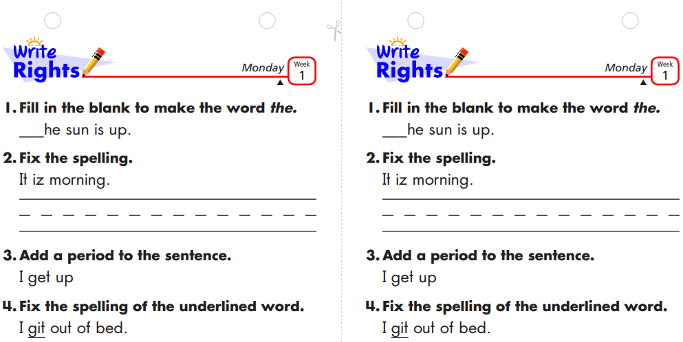 Write Rights của Writing A-Z là các hoạt động thực hành ngữ pháp mỗi ngày, kéo dài trong 30 tuần, đặt mục tiêu là những kỹ năng ngữ pháp chủ chốt tại mỗi cấp độ trong cả 4 cấp độ luyện viết trên Writing A-Z.
