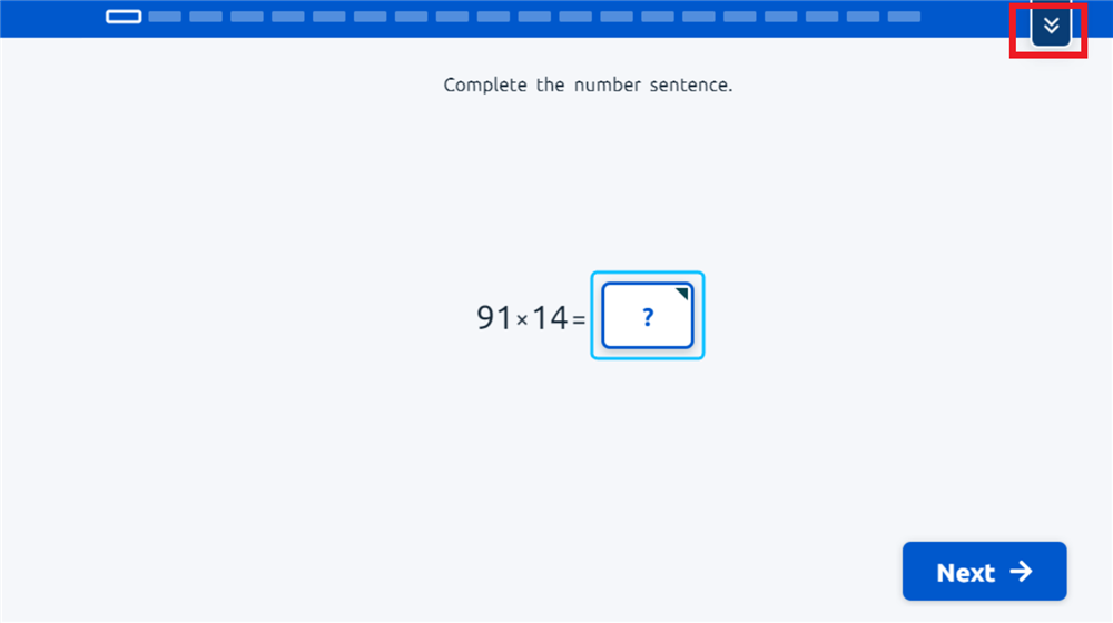Để tạm dừng bài kiểm tra, bấm vào mũi tên xuống ở góc trên cùng bên phải màn hình: