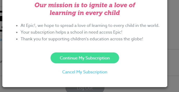 Nếu bạn không thấy lựa chọn "Cancel Subscription", bạn cần đăng nhập getepic.com để hủy đăng ký (vì đó là nơi bạn đăng ký lần đầu).