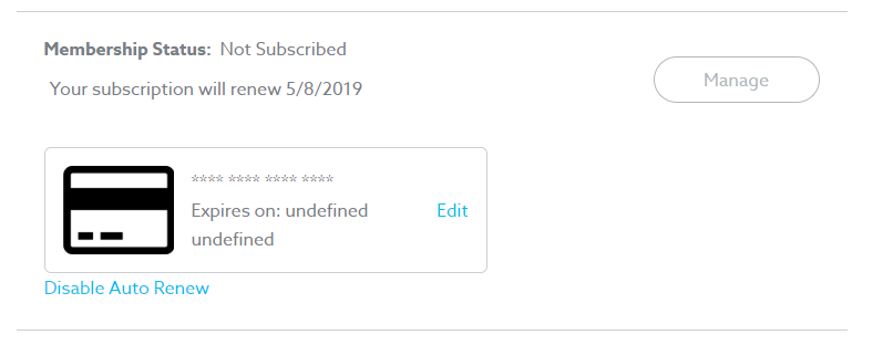 Bước 2: Click vào Manage bên dưới phần Membership Status và chọn Disable Auto Renew