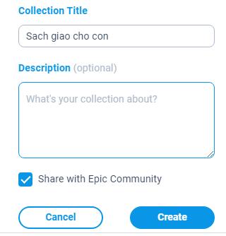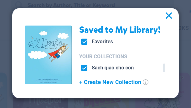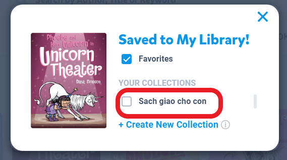 Từ các lần sau, khi chọn 1 cuốn sách, bạn có thể tick vào tên bộ sưu tập bạn đã tạo trước đó hoặc chọn Create a new collection để tạo một bộ sưu tập mới.