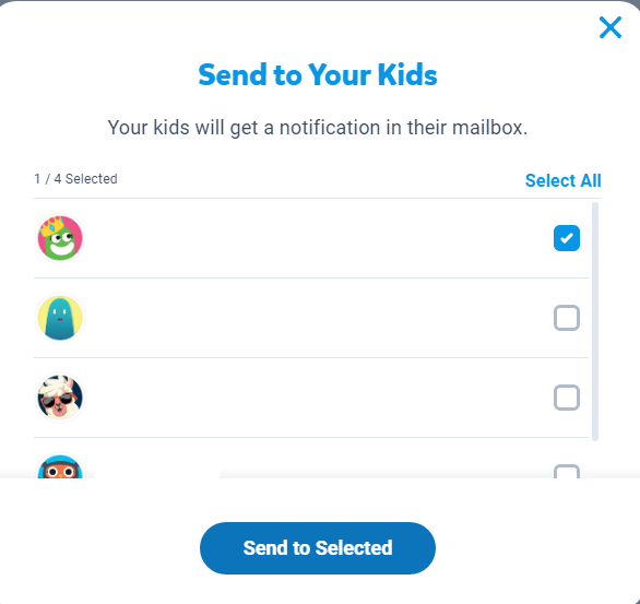 Bước 5: Tick chọn tên bé rồi nhấn Send to Selected. Bé sẽ nhận được sách bạn giao trong mục Mailbox khi mở tài khoản Student của mình.