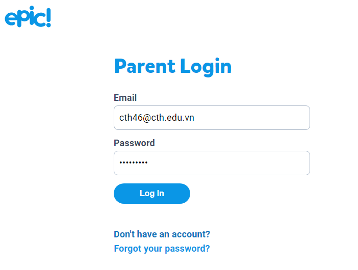 Đăng nhập tài khoản Epic Student tại: https://www.getepic.com/students. Gõ Classcode, chọn tên đăng nhập của học sinh, gõ password.