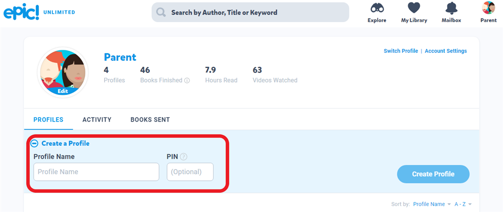 Bước 4: Nhập tên - Profile name và PIN của tài khoản con. Sau đó nhấn Create profile.