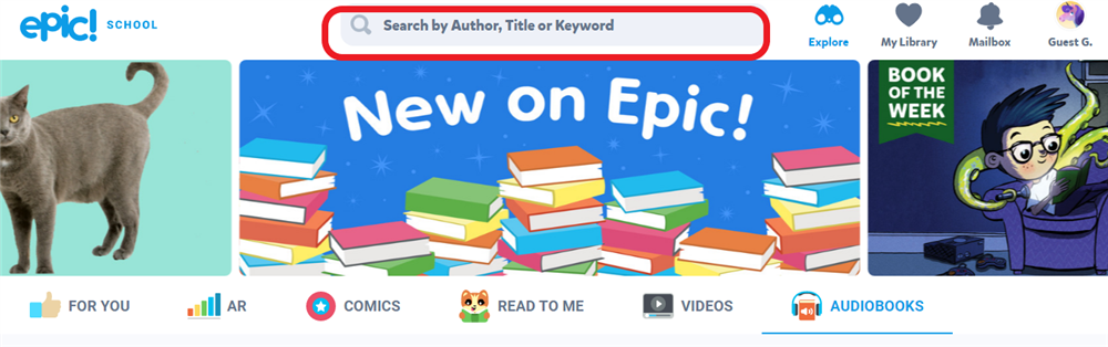 Tìm kiếm trên ứng dụng Epic: ô Search ở cuối màn hình thiết bị di động.