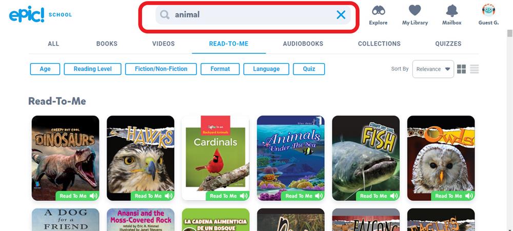 Gõ tên sách hoặc tên chủ đề vào ô tìm kiếm, ví dụ: Animal