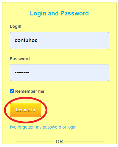 Điền ID và mật khẩu > Nhấn Let me in.
