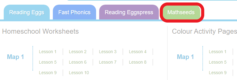 Chọn tab Mathseeds để hiển thị danh sách các worksheets và chọn tài liệu bạn muốn tải về.