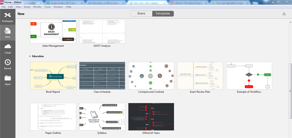 Cài đặt xong bạn hãy khám phá những mẫu templates có sẵn khi muốn tạo một mind map mới. Việc này sẽ giúp bạn có thêm rất nhiều ý tưởng về việc vận dụng và trình bày các sơ đồ tư duy.