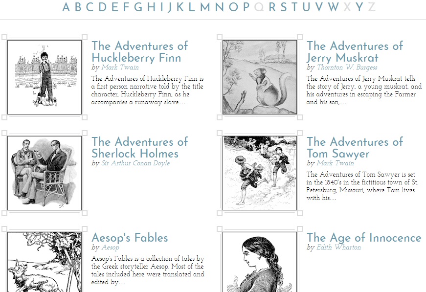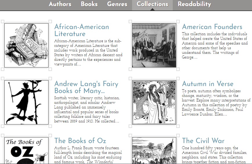 Ở phần đầu trang, bạn có thể chọn sách theo Tác giả, Tên sách, Thể loại (Phiêu lưu mạo hiểm, Kinh dị…), Tuyển tập (Thơ mùa thu, Tuyển tập công chúa…) và cuối cùng là Mức độ đọc (Readability). Tại mục này, toàn bộ sách sẽ được sắp xếp, phân loại theo mức độ khó/dễ để phù hợp với trình độ và nhu cầu của người đọc khi vào trang.