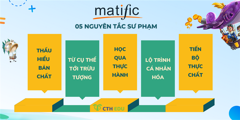 Điểm khác biệt của Matific so với các chương trình học Toán khác thể hiện qua 5 nguyên tắc sư phạm được phản ánh một cách trọn vẹn qua hàng nghìn hoạt động Toán: