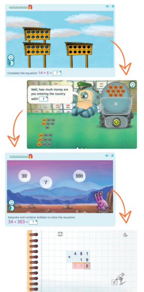 Trong Matific, các khái niệm trừu tượng sẽ được dạy theo từng cấp độ, từ đơn giản, trực quan nhất, tiến dần tới tăng độ khó và trừu tượng. Nhờ đó, trẻ học một cách bài bản, hiểu rõ, nhớ lâu khái niệm và tăng khả năng áp dụng vào các nhiệm vụ giải toán thực tế.
