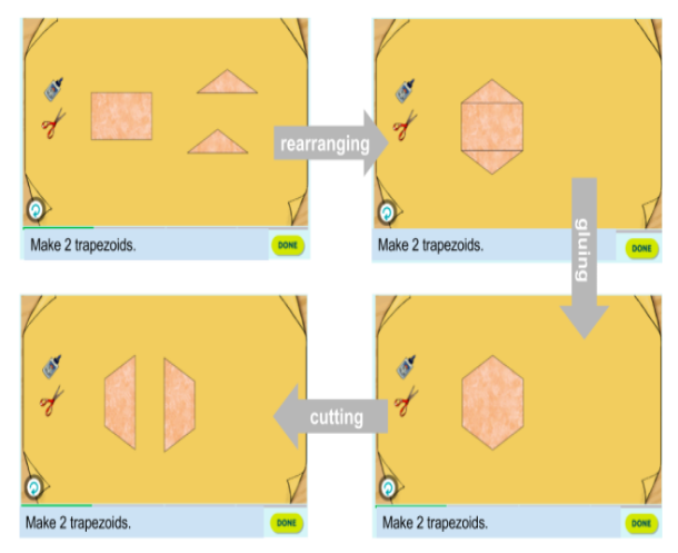 Ví dụ, khi học về các hình như hình vuông, hình chữ nhật, hình thang… Học sinh dùng kéo và keo dán để cắt, dán các hình thành hình được yêu cầu. Quá trình thực hành, thử và sai này không những khiến học sinh hứng thú mà còn giúp cho việc hiểu và nhớ lâu các khái niệm.