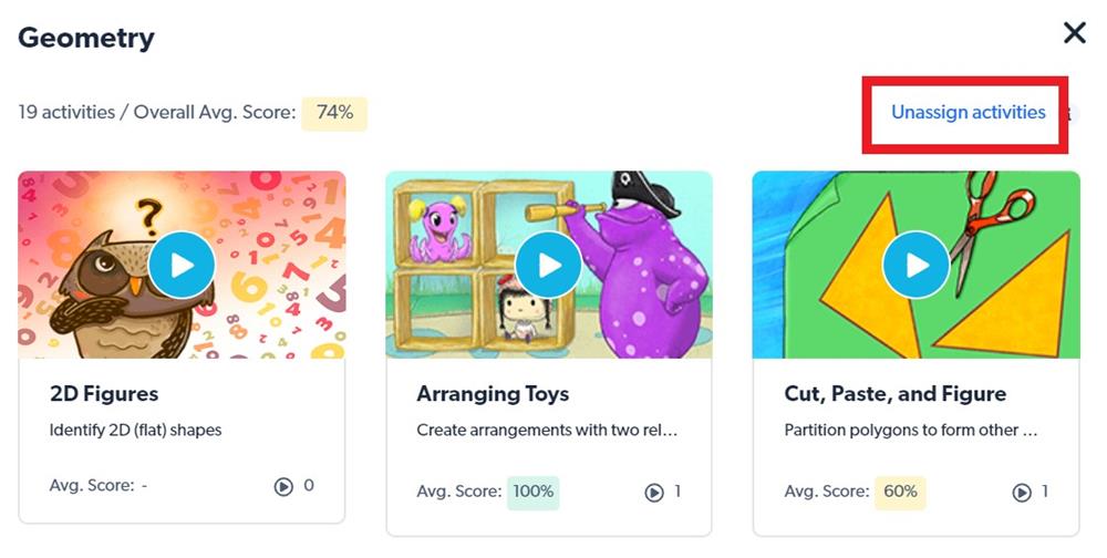 - Bước 3: Sau khi giao xong, hệ thống sẽ hiện Unassign activities/Không chỉ định hoạt động. Bạn nhấn vào đây nếu muốn hủy việc giao nhóm hoạt động vừa rồi cho con.