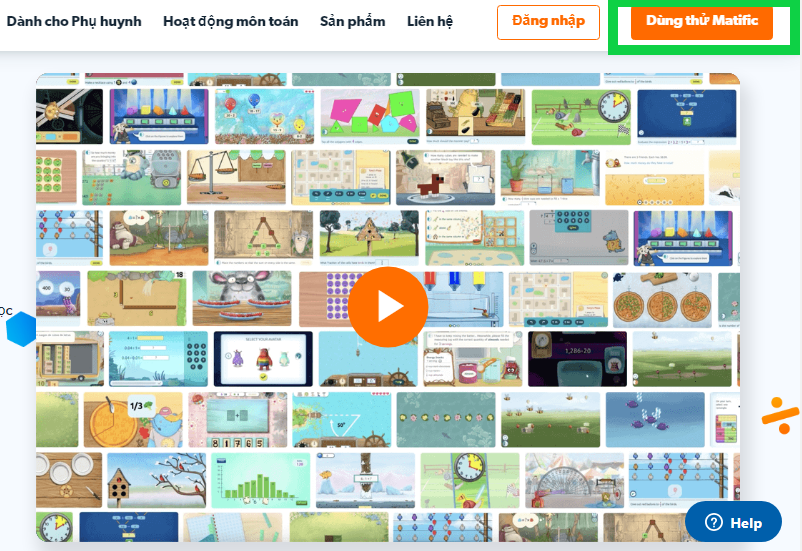 Bước 1: Vào trang web Matific > Nhấn Dùng thử Matific.
