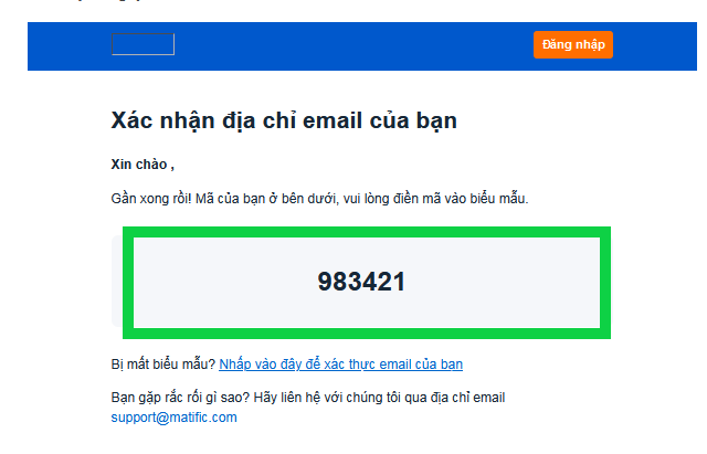 Bước 6: Mở mail xác thực của hãng. Copy mã số gồm 6 chữ số có trong email [ví dụ như hình dưới, mã số là 983421].