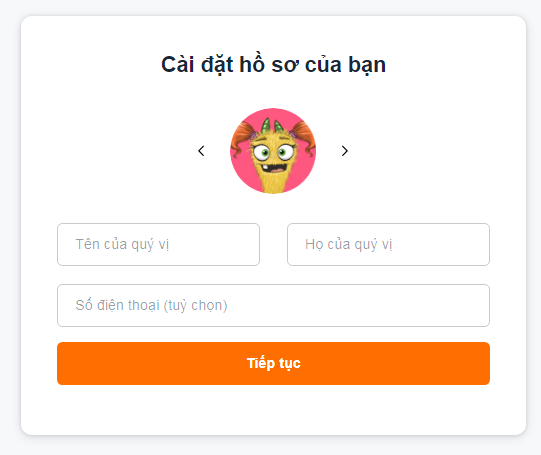 Bước 8: Nhập họ và tên của bạn vào ô tương ứng, không cần nhập số điện thoại, sau đó bấm Tiếp tục.