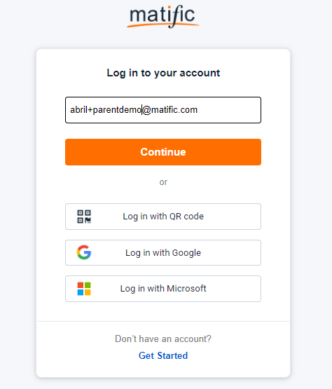 Đăng nhập tài khoản Parent