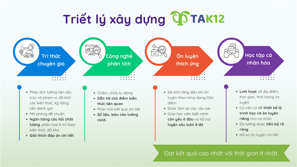 Biết khai thác hiệu quả hệ thống ôn luyện thông minh TiengAnhK12 (TAK12) sẽ là một trong những đáp án cho câu hỏi trên.