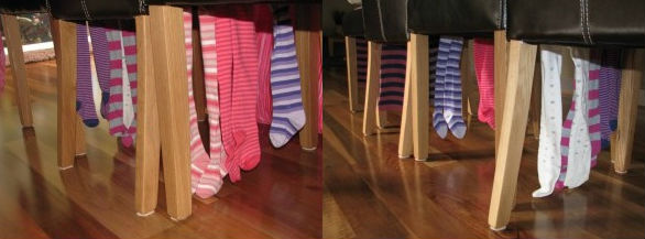 Nguyên liệu: Ghế, khăn choàng hoặc quần tất dài, tấm chăn lớn phủ trên để tạo hiệu ứng đường hầm