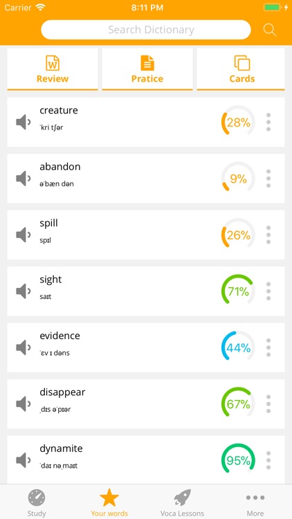 WordUp giúp xây dựng bản đồ kiến thức tiếng Anh của bạn. Khoảng 25.000 từ tiếng Anh dựa trên việc phân tích 600.000 bộ phim và chương trình truyền hình, kiểm tra các từ điển đáng tin cậy như Oxford, được xếp hạng theo mức độ quan trọng và hữu ích, dựa trên tần suất chúng được sử dụng trong tiếng Anh giao tiếp ngoài đời thực.