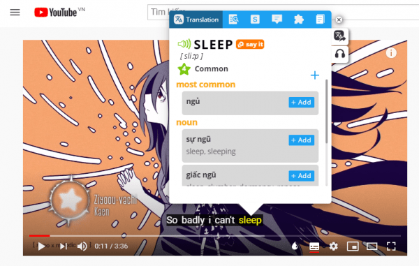 Chức năng tra nghĩa từ khi đang xem YouTube.