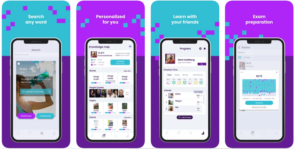 Với ứng dụng này, bạn có thể học định nghĩa của từ, nhất là cách sử dụng từ qua hàng loạt ví dụ có từ phim ảnh, tin tức, phát ngôn, hơn 10 triệu video của các kênh YouTube nổi tiếng… - tức là học từ trong ngữ cảnh.
