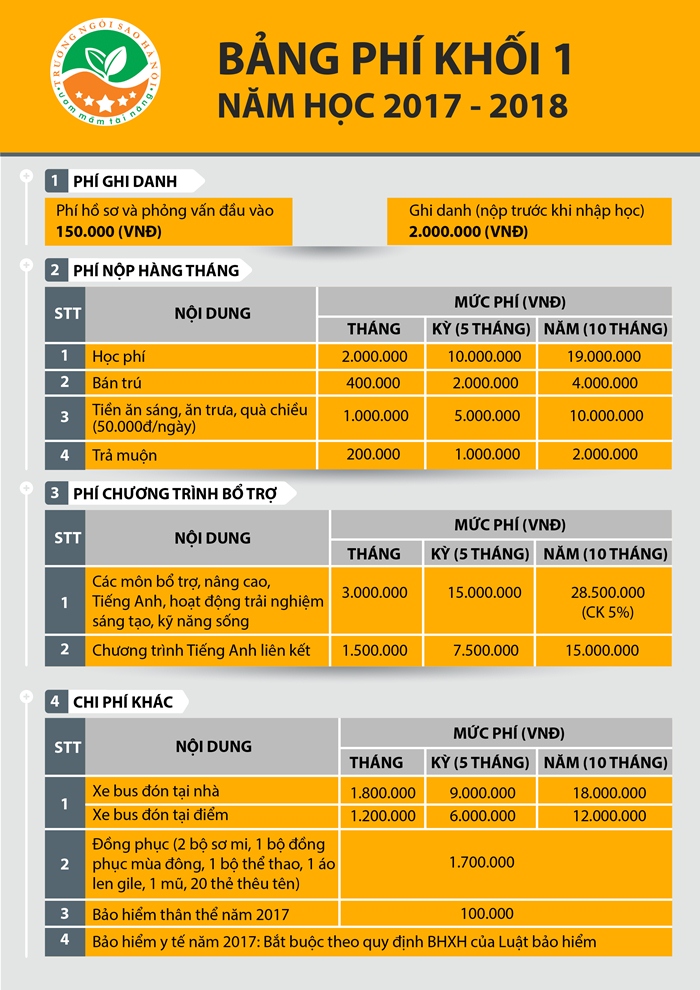 Thông tin học phí năm học 2017-2018 trên website trường