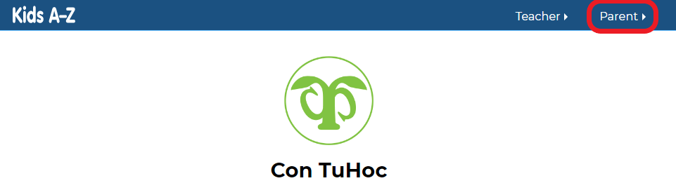 Bước 1: Vào trang KidsA-Z.com và nhấp chuột vào “Parent” ở góc trên cùng bên phải màn hình