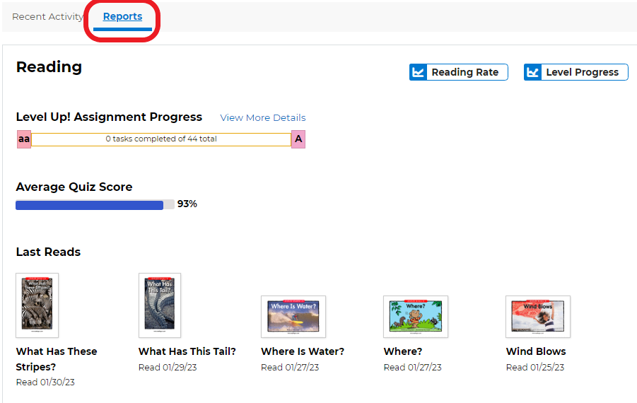 Phụ huynh có thể sử dụng tài khoản của mình để theo dõi, giám sát các hoạt động của con, xem xét báo cáo cho tất cả các sản phẩm Learning A-Z mà con bạn truy cập.