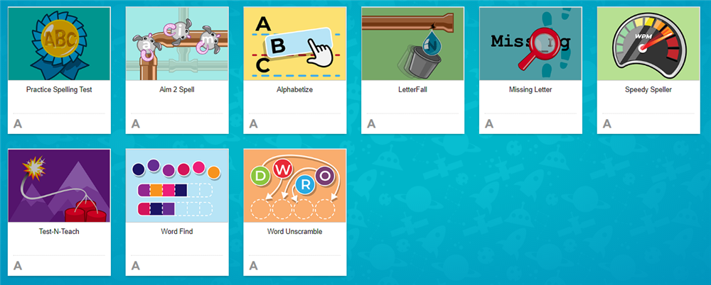 - Cuộc thi đánh vần nhanh: hệ thống đọc 1 từ và bé sẽ phải viết từ đó vào khung cho sẵn trong lúc đồng hồ bấm giờ chạy. Tổng thời gian hoàn thành càng ngắn thì bé sẽ là người chiến thắng (Speedy Speller).
