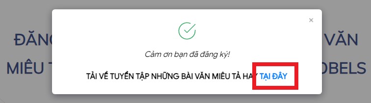 Ngay sau khi bạn điền form, thông báo đăng ký thành công xuất hiện, bạn nhấn vào Tại đây để tải tài liệu về thiết bị. Chúc các con sẽ sử dụng bộ tài liệu này một cách hiệu quả!