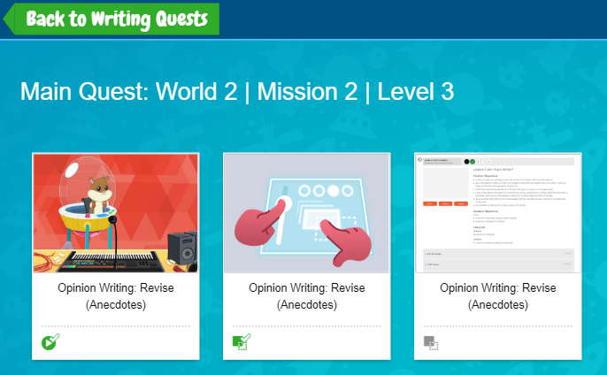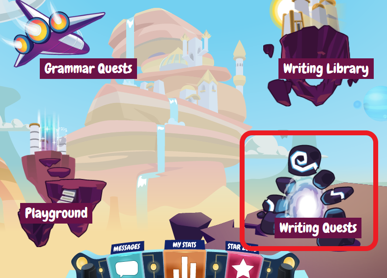 - Chọn Writing Quests - Trong các bài học mà PH/GV sử dụng tài khoản Teacher để giao, học sinh sẽ thực hành viết bằng công cụ WALT.